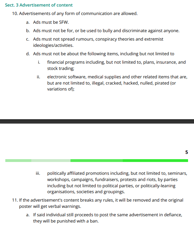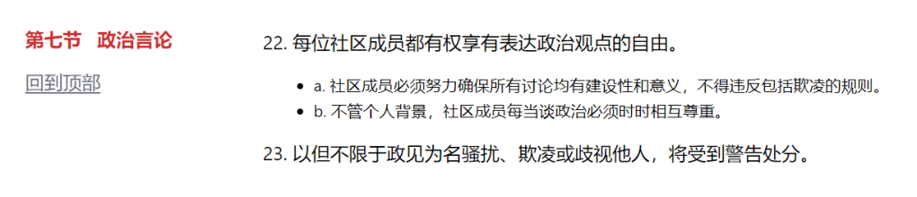 根据更新的《社区规章》,第 3(放置内容广告)、第 4 (情绪发泄)和第 7 节(政治言论) 得到了扩展和改写。